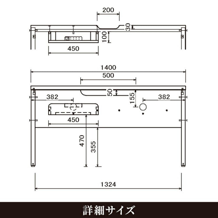 デスク 幅140cm コンセント付き セラミック調 背面化粧 model