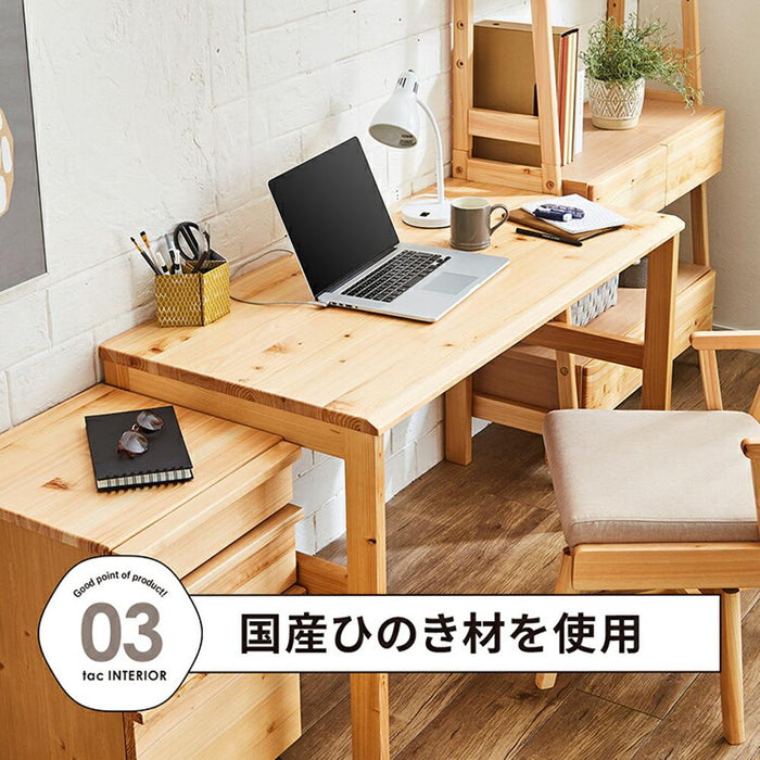 デスク 幅120cm 国産ひのき 無垢材 コンセント付き