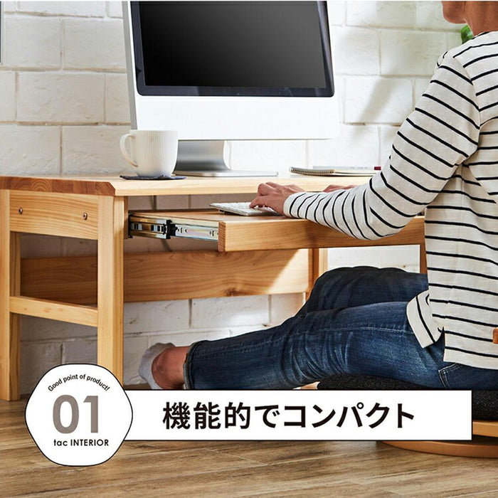 デスク 幅80cm 国産ひのき 無垢材 スライドテーブル付き コンパクト
