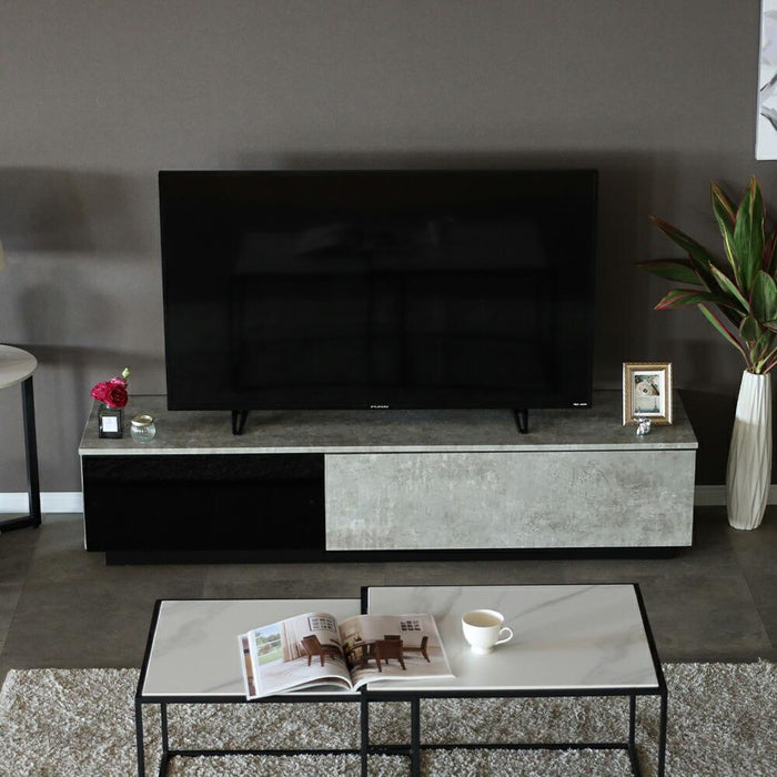 テレビボード 幅160cm コンクリート調 ハイグロス モダン 塩ビシート