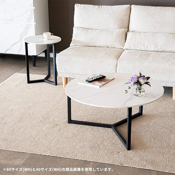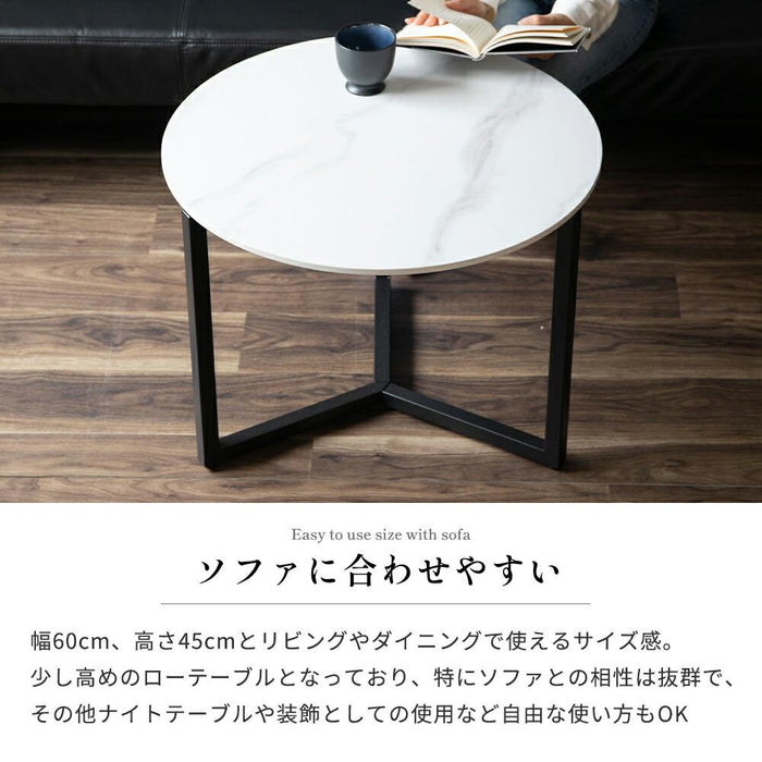 ローテーブル 幅60cm 丸テーブル セラミック天板 スチール脚 高級感