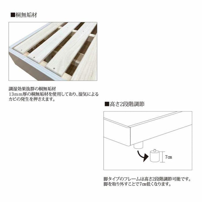ベッドフレーム セミダブル 高さ調整 棚 すのこ 宮棚 120cm 北欧 桐 ロースタイル