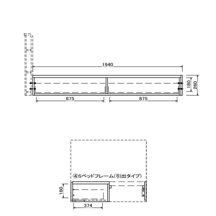| ヘッドボード:幅104×奥行96×高さ14cm(33kg) サイドフレーム:幅197×奥行57×高さ28cm(45kg) 床板:幅103×奥行50×高さ10cm(7kg) 脚:幅101×奥行4×高さ33cm(4kg) | |