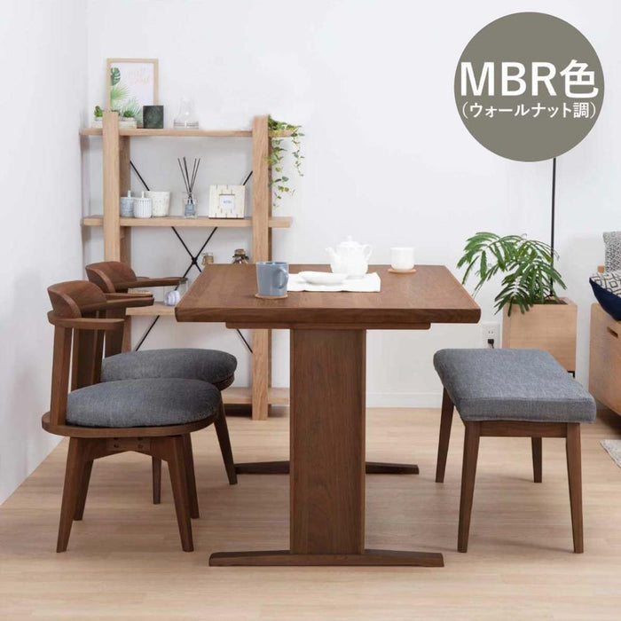 ダイニングセット 4人 幅120cm T字脚 突板 回転チェア ベンチ ファブリック 北欧