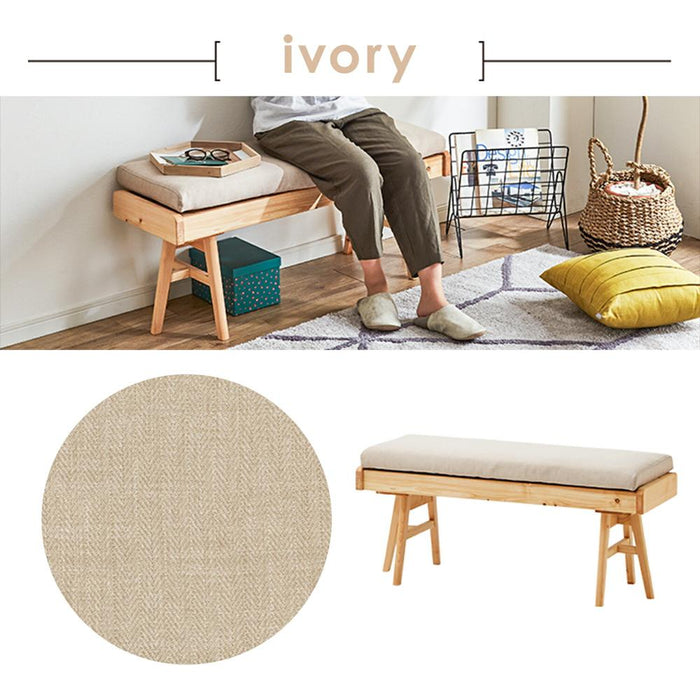 ベンチ 幅105cm 国産ひのき 無垢材 ファブリック 北欧