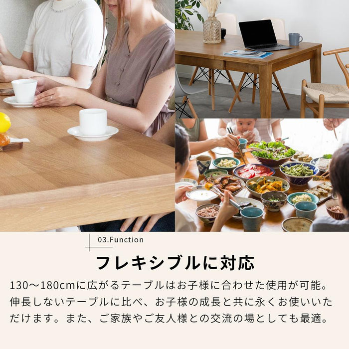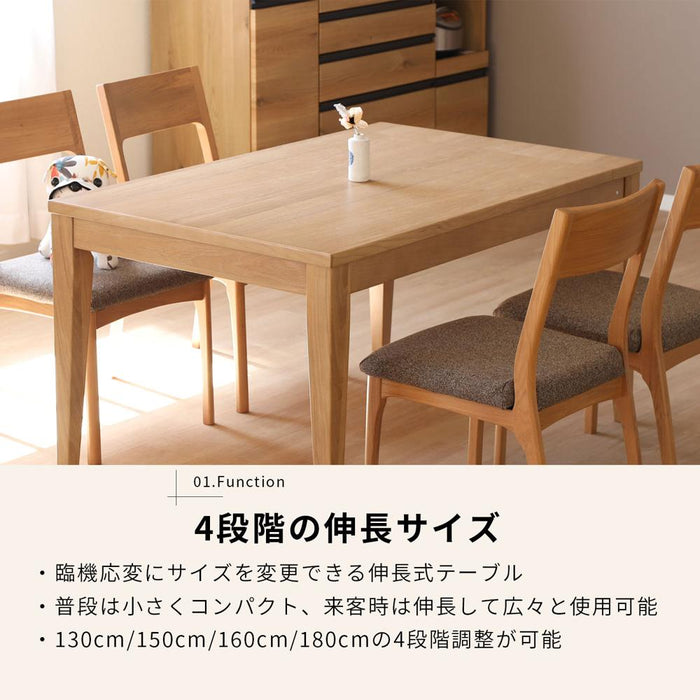 ダイニングテーブル 4人 6人 幅130 180cm 伸長 オーク 突板 北欧