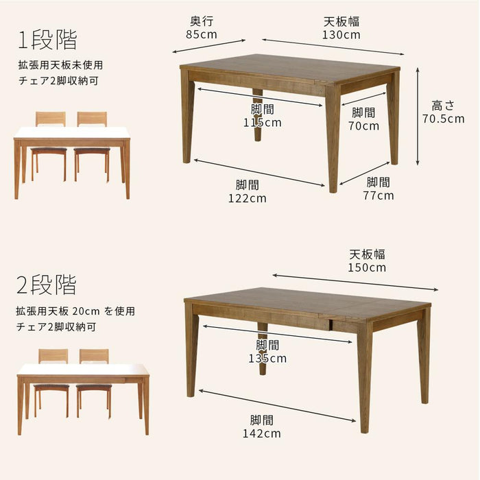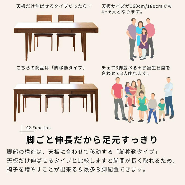 〇幅130から150、160、180 と4段階でお好きな長さに伸長可能な当店人気テーブル。