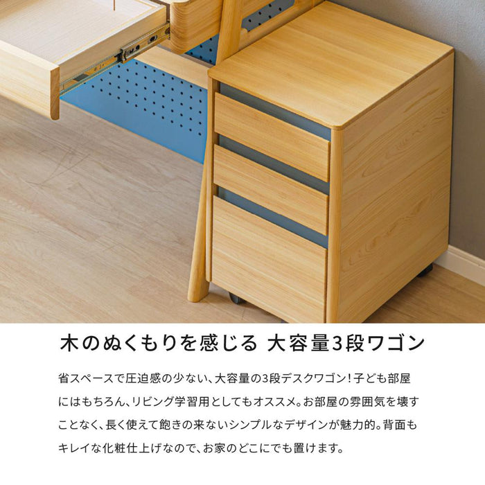 ワゴン デスクワゴン キャスター 3段 机 ワゴン 収納 ヒノキ 国産ひのき 北欧