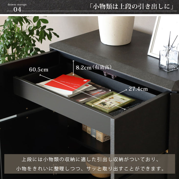 サイドボード 80cm チェスト 収納 ベッド横 セラミック調 石目柄 クール
