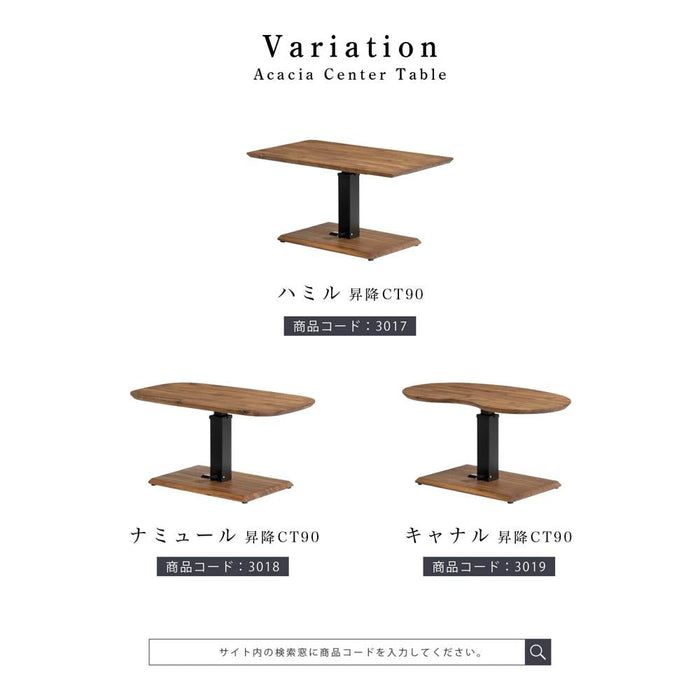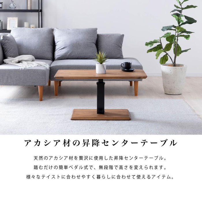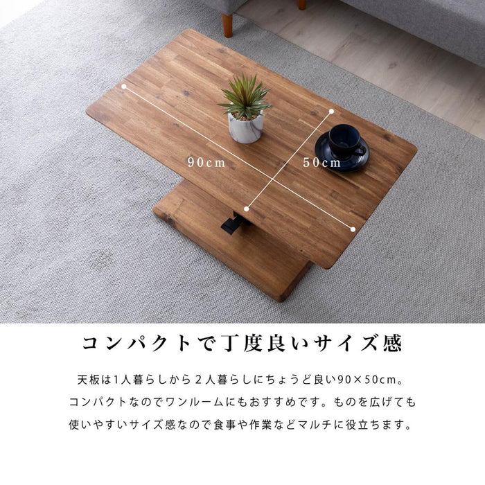 ローテーブル 幅90cm 昇降 無段階 アカシア 無垢材 スチール脚 カフェ