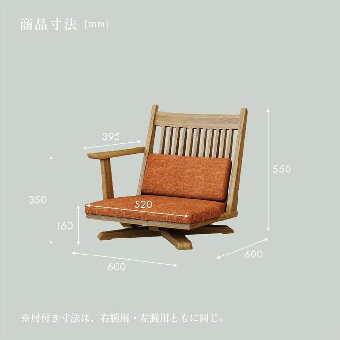 回転チェア 幅63.5cm 和 オーク 無垢材 肘付き クッション ファブリック