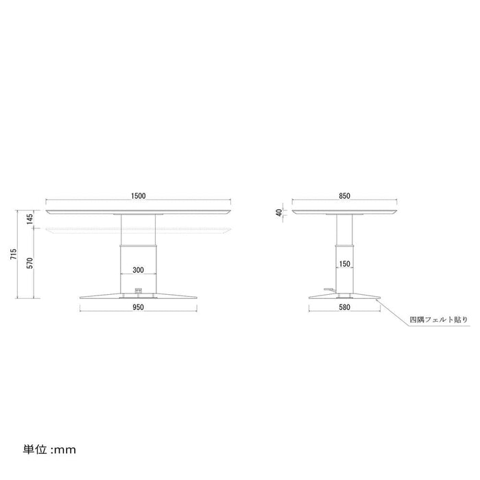 | 幅150×奥行85×高さ57-71.5cm(71.5kg) | |