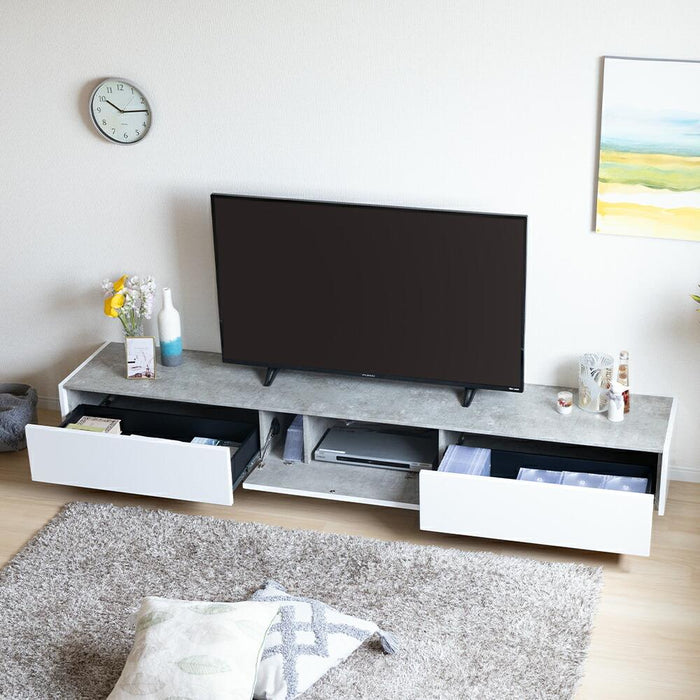 テレビボード 幅220cm くすみカラー 石目調 モダン 塩ビシート 【開梱設置】
