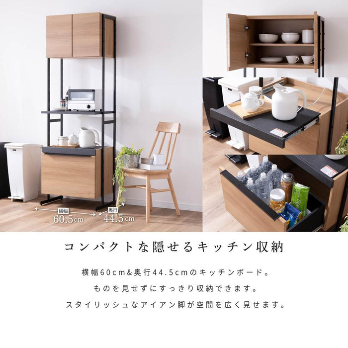 キッチンボード 幅60cm 木目調 スチール脚 背面化粧 塩ビシート