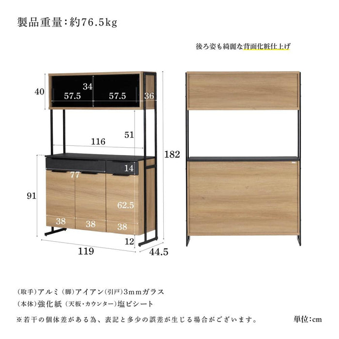 | 幅119×奥行44.5×高さ182cm(76.5kg) | |