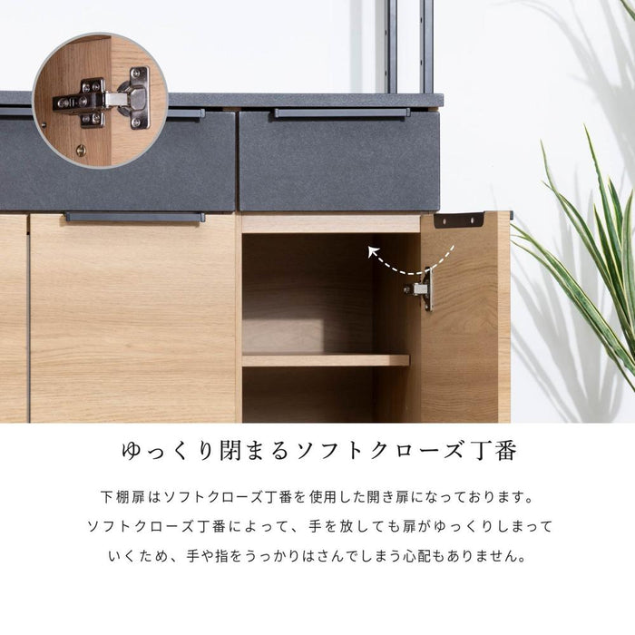 キッチンボード 幅120cm 木目調 スチール脚 背面化粧 塩ビシート