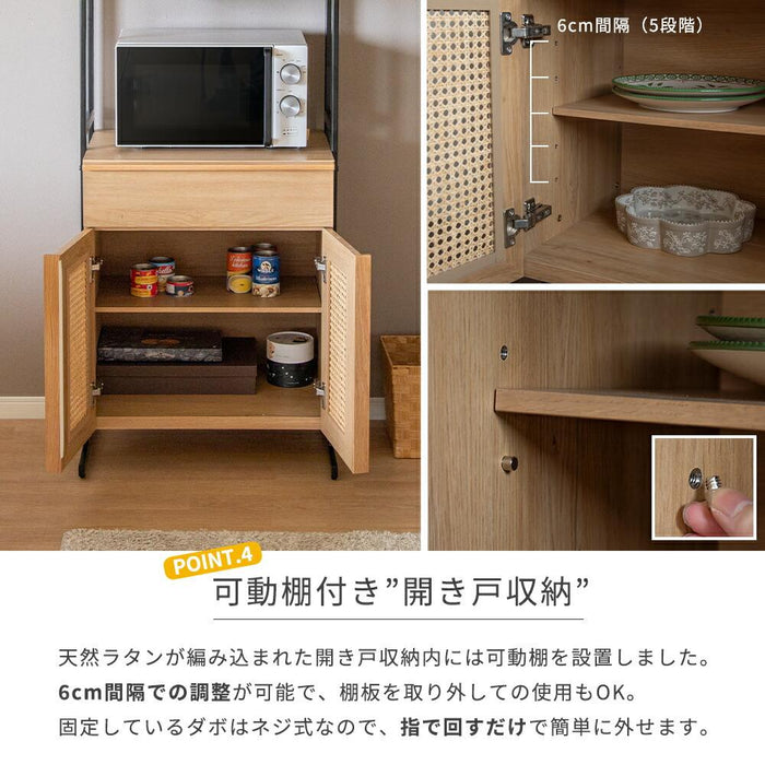 キッチンボード 幅60cm 天然ラタン オーク調 スチール脚 背面化粧